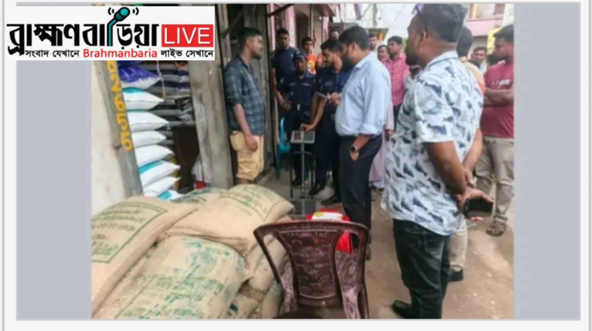 ব্রাহ্মণবাড়িয়ার আখাউড়া পৌর শহরের বড় বাজার এলাকা থেকে খাদ্যবান্ধব কর্মসূচির ৩৮ বস্তা সরকারি চাল জব্দ করেছে ভ্রাম্যমাণ আদালত। এই চাল অবৈধভাবে দোকানে মজুত রাখার অভিযোগে সারোয়ার ট্রেডার্সের মালিক মো. আনোয়ারকে ২০ হাজার টাকা জরিমানা করা হয়েছে।