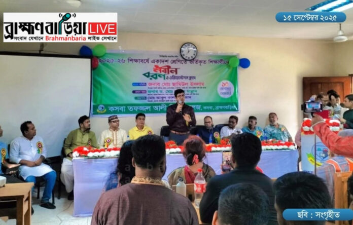 ব্রাহ্মণবাড়িয়ার ঐতিহ্যবাহী শিক্ষা প্রতিষ্ঠান কসবা তফজ্জল আলী ডিগ্রি কলেজে একাদশ শ্রেণির নবীন শিক্ষার্থীদের বরণ ও ওরিয়েন্টেশন ক্লাস অনুষ্ঠিত হয়েছে। সোমবার (১৫ সেপ্টেম্বর) সকালে কলেজ মিলনায়তনে এক বর্ণাঢ্য আয়োজনের মধ্য দিয়ে নতুন শিক্ষার্থীদের স্বাগত জানানো হয়।