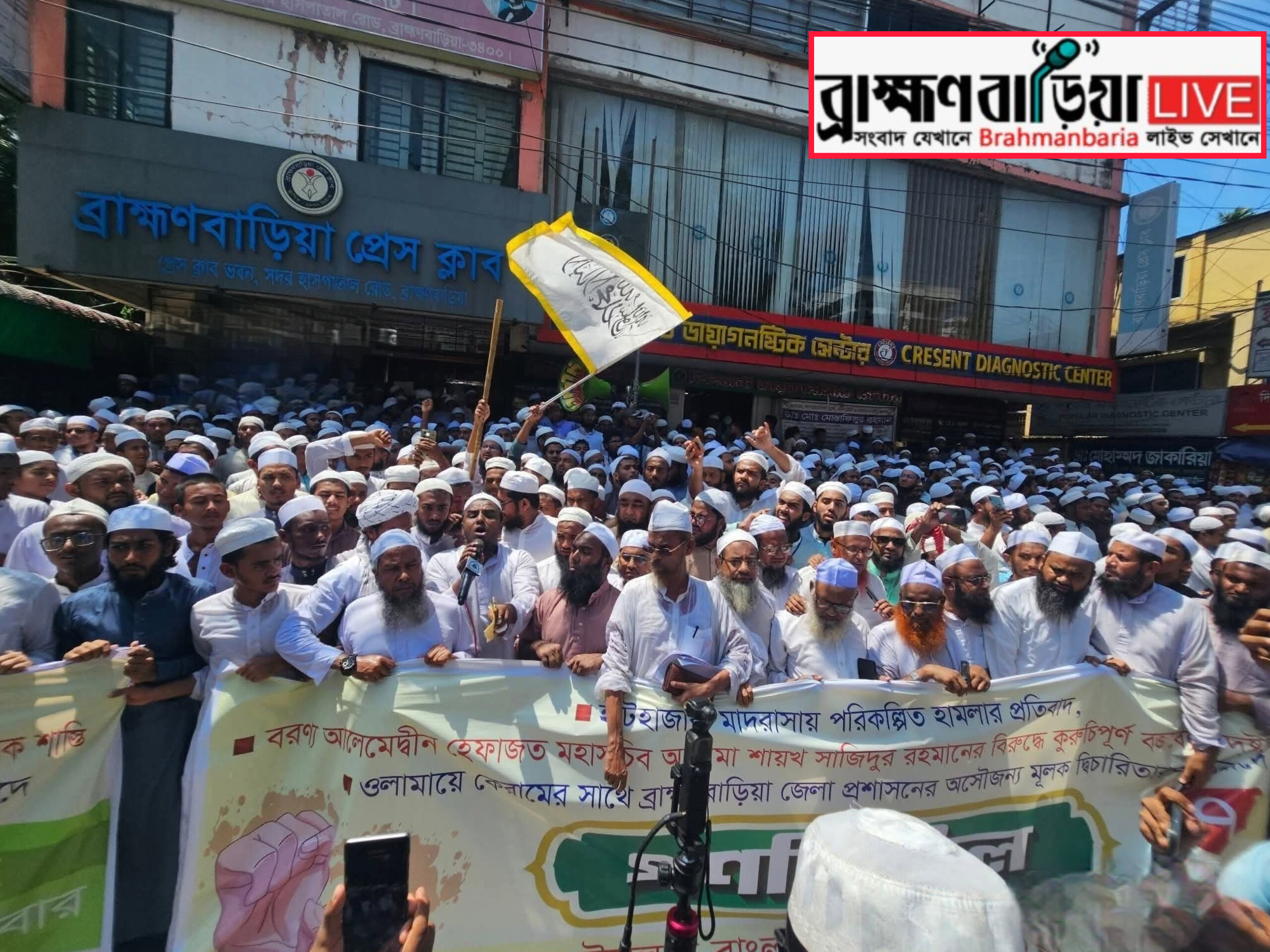 হাটহাজারী মাদ্রাসায় তথাকথিত হামলা এবং বিজয়নগরের এক ব্যক্তির দ্বারা হেফাজত মহাসচিবকে নিয়ে কুরুচিপূর্ণ মন্তব্যের প্রতিবাদে ব্রাহ্মণবাড়িয়ার ঐতিহ্যবাহী জামিয়া ইউনুসিয়া মাদ্রাসা এক বিশাল বিক্ষোভ সমাবেশ করেছে। সমাবেশ থেকে বক্তারা ভণ্ড পীর নাঈমসহ অভিযুক্তদের গ্রেফতার এবং আরও কয়েকটি কঠোর পদক্ষেপের দাবি জানান।