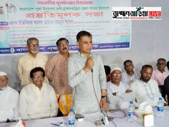 শুক্রবার ব্রাহ্মণবাড়িয়ায় আসন্ন শারদীয় দুর্গাপূজা উদযাপনের প্রস্তুতি নিয়ে একটি গুরুত্বপূর্ণ সভা অনুষ্ঠিত হয়েছে। বাংলাদেশ পূজা উদযাপন ফ্রন্ট ব্রাহ্মণবাড়িয়া জেলা শাখার উদ্যোগে আয়োজিত এই সভায় প্রধান অতিথি হিসেবে উপস্থিত ছিলেন জেলা বিএনপির সভাপতিকেন্দ্রীয় বিএনপির অর্থনৈতিক বিষয়ক সম্পাদক, ইঞ্জিনিয়ার খালেদ হোসেন মাহবুব শ্যামল