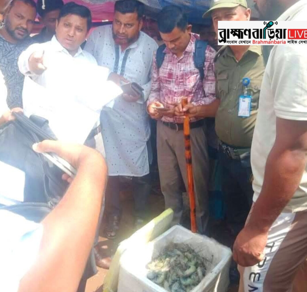 সরাইল উপজেলায় চিংড়ি মাছে জেলি ও ভেজাল পদার্থ পুশ করার অপরাধে এক মাছ বেপারিকে এক লাখ টাকা জরিমানা এবং এক মাসের বিনাশ্রম কারাদণ্ড প্রদান করেছে ভ্রাম্যমাণ আদালত।
