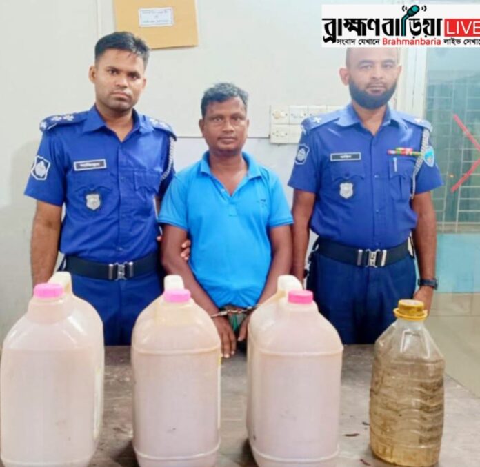 সরাইলে ৩০ লিটার চোলাই মদসহ এক মাদক কারবারী গ্রেফতার