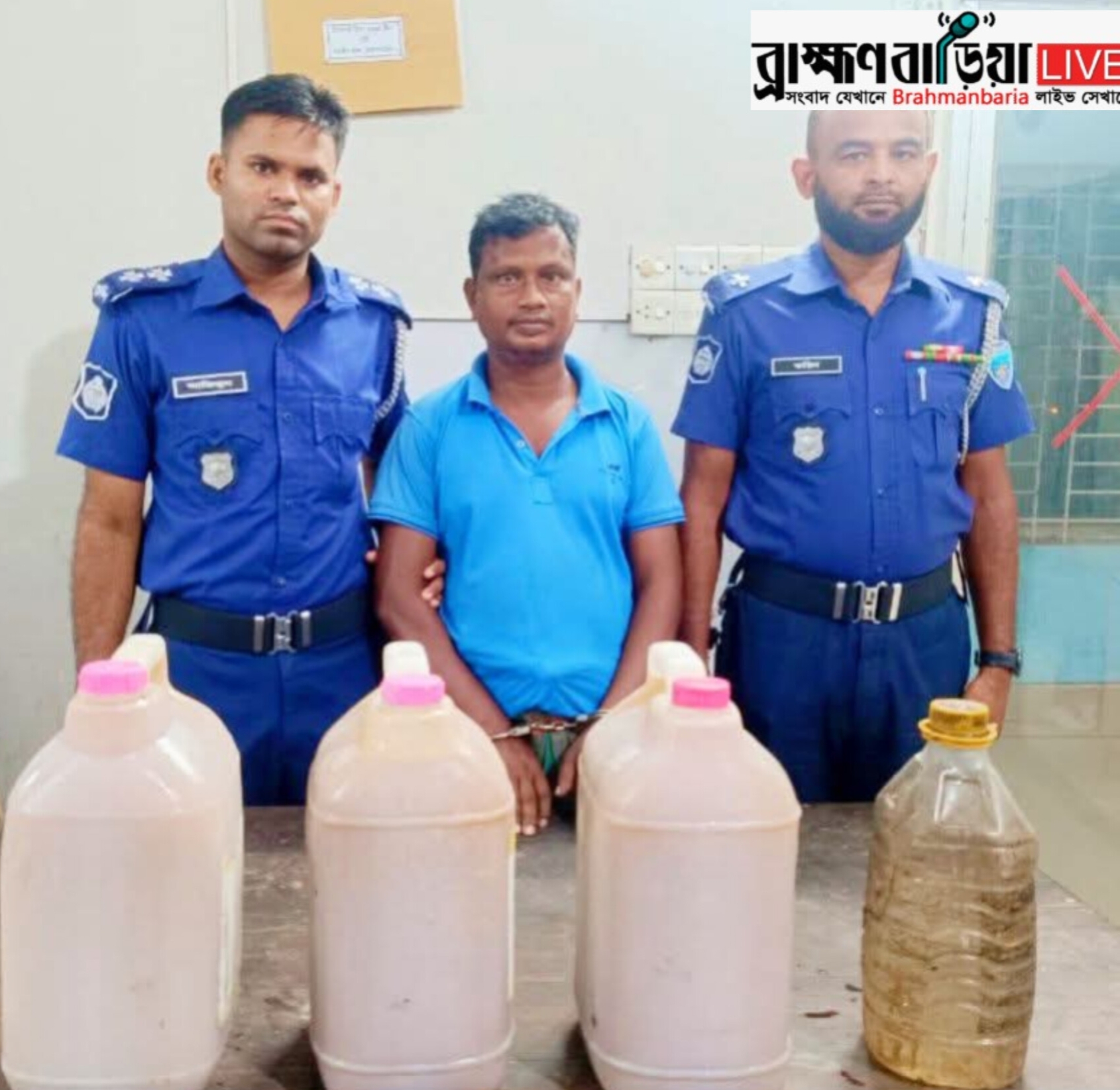 ​সোমবার (২০ অক্টোবর, ২০২৫) রাতে সরাইল থানা পুলিশের একটি চৌকস দল শাহজাদাপুর ইউনিয়নের মলাইশ এলাকায় অভিযান পরিচালনা করে। অভিযানকালে মাদক কারবারী রবি দাস (৪০) কে তার হেফাজত থেকে ৩০ (ত্রিশ) লিটার দেশীয় তৈরি চোলাই মদসহ হাতেনাতে গ্রেফতার করা হয়। গ্রেফতারকৃত রবি দাস মৃত রাজ মোহন রবি দাসের ছেলে।