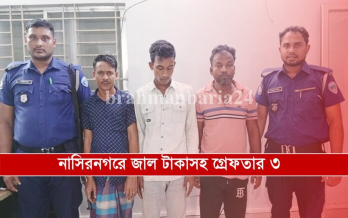 ব্রাহ্মণবাড়িয়ার নাসিরনগরে ১২,৫০০ জাল টাকাসহ তিনজনকে গ্রেপ্তার করেছে পুলিশ।