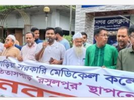 ব্রাহ্মণবাড়িয়ার নবীনগরে মেডিকেল কলেজ স্থাপনের দাবিতে মানববন্ধন